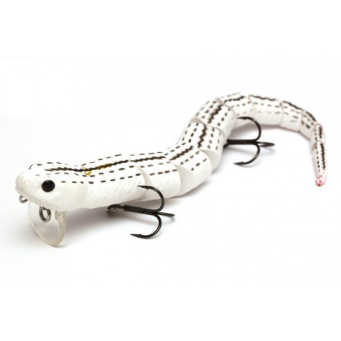 Artificiale imitazione perfetta di un vero serpente, anche nei movimenti. Lunghezza 20 cm peso 25 grammi. Colore White Snake Azione di superficie o appena sotto la superficie. 2 pezzi