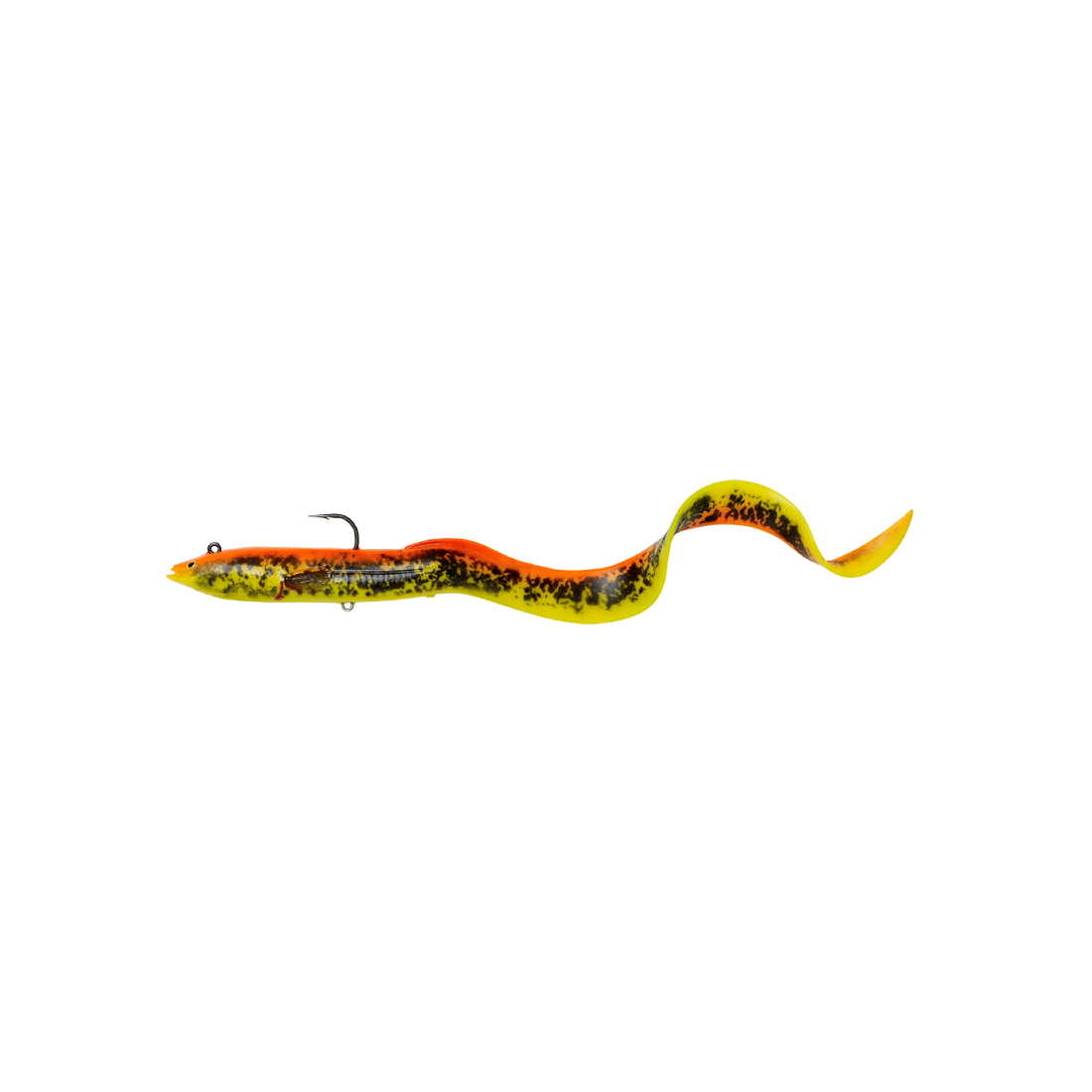 Imitazione di anguilla siliconica già montata con ancoretta sul ventre robusta 1X e amo sul dorso con colori 4D. Lunghezza 20 cm peso 38 grammi. Rattling in acciaio all'interno. Colore Golden Ambulance PHP