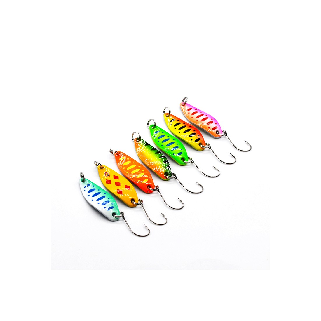Cucchiaino ondulante Panther Martin modello "svizzero martellato" 5 grammi. Made in Italy. Corpo argento. Lunghezza corpo 6 cm, lunghezza con ancoretta 8 cm. Ottimo per la pesca alla trota.