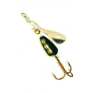 Cucchiaino rotante Panther Martin 6 grammi. Made in Italy. Corpo nero, paletta argento. Modello mosca con piombo, ancoretta dotata di piume.