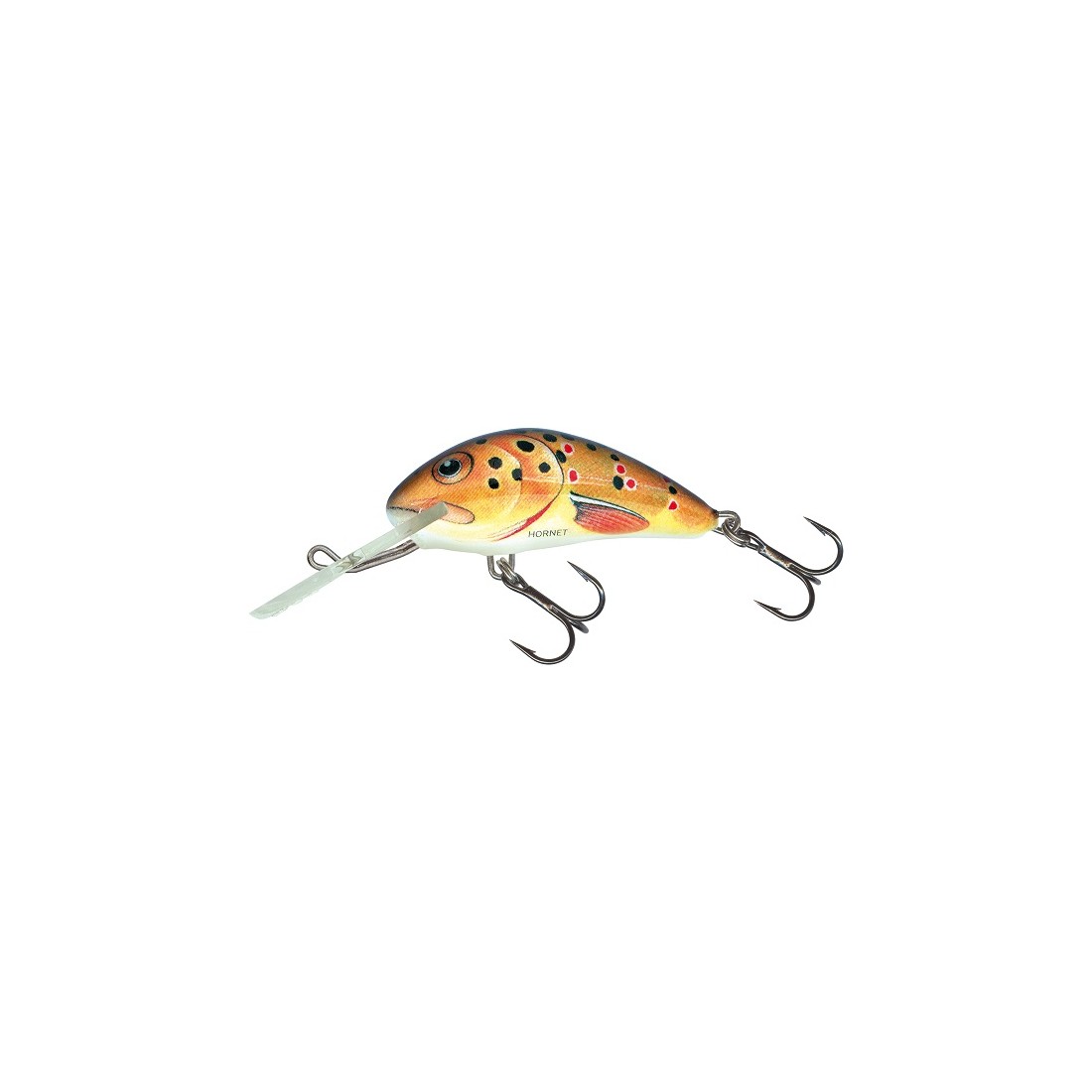 Salmo Butcher è un'artificiale studiato per la pesca della trota in torrente ma è polivalente, utilizzabile anche in lago per black bass e altri predatori. Armatura passante in acciaio, Azione sinking, profondità 1,0-2,0 m. lunghezza 5 cm peso 7 gr colore holo brown trout