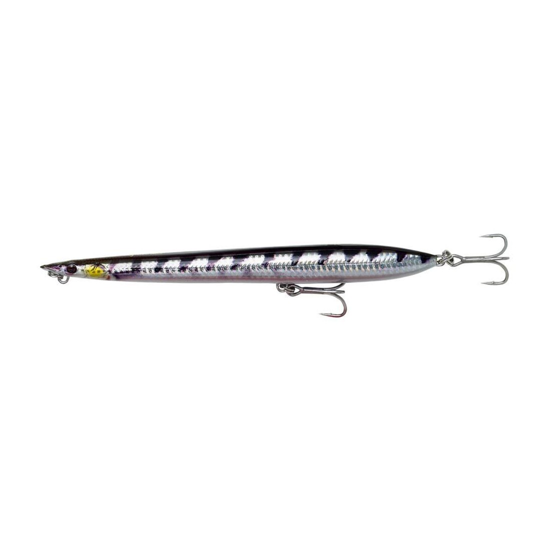 Il Sandeel surf walker e un walk the dog con ancorette ST46 Saltwater. Grazie alla forma compatta si possono effettuare lanci molto lunghi. Rattle all'interno del corpo. Lunghezza 15,5 cm Peso 23 grammi. Colore Barracuda PHP